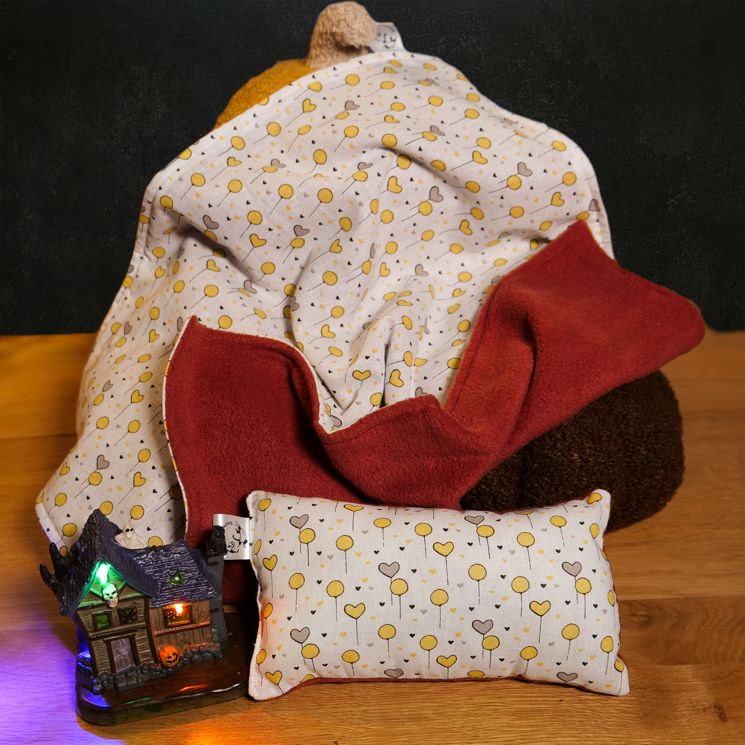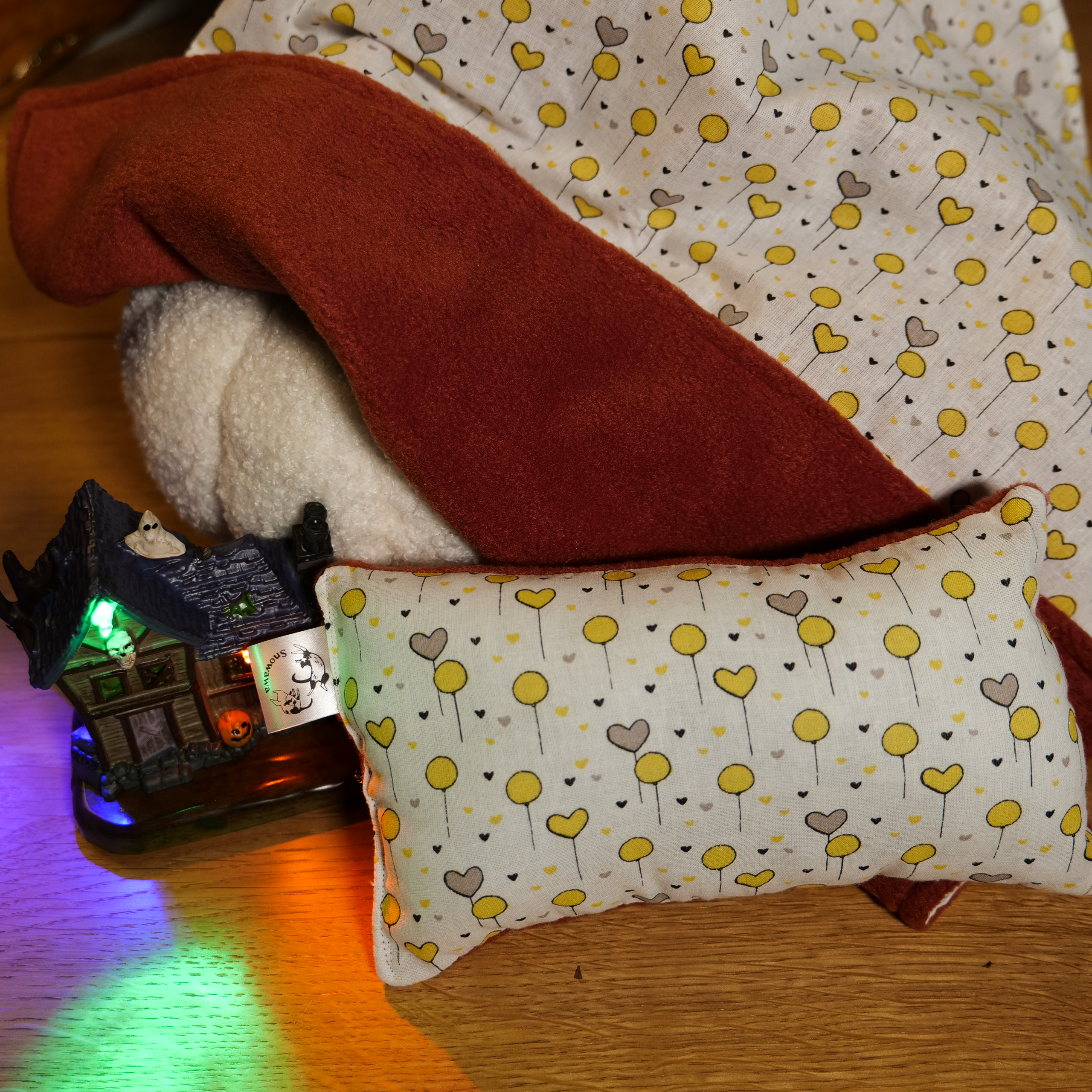 La Couverture des Quatre Lunes est un artefact de protection thermique conçu pour suivre votre familier tout au long de la roue de l’année. Grâce à son alchimie double-face, elle s’adapte aux besoins de son corps, offrant tantôt un nid douillet, tantôt un havre de fraîcheur. Elle est accompagnée de son Coussin d’Ancrage, idéal pour reposer une tête fatiguée après une journée d’exploration