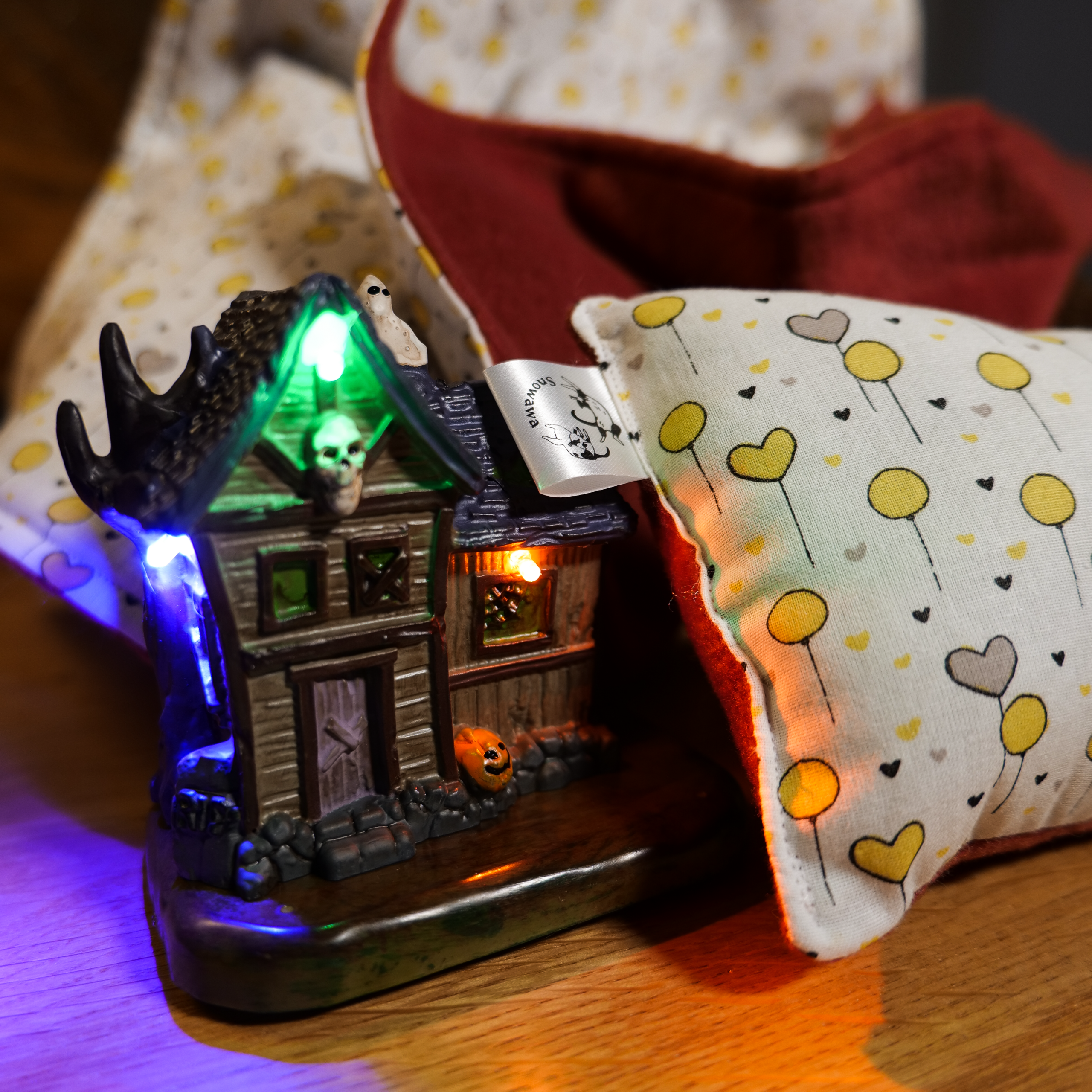 Tu peux coordonner le motif de ta » Couverture des Quatre Lunes & son Coussin d’Ancrage » avec celui de ton « Grimoire de Vitalité » voire avec ton « Parchemin des Frontières » pour un total look « Officine Coven ».