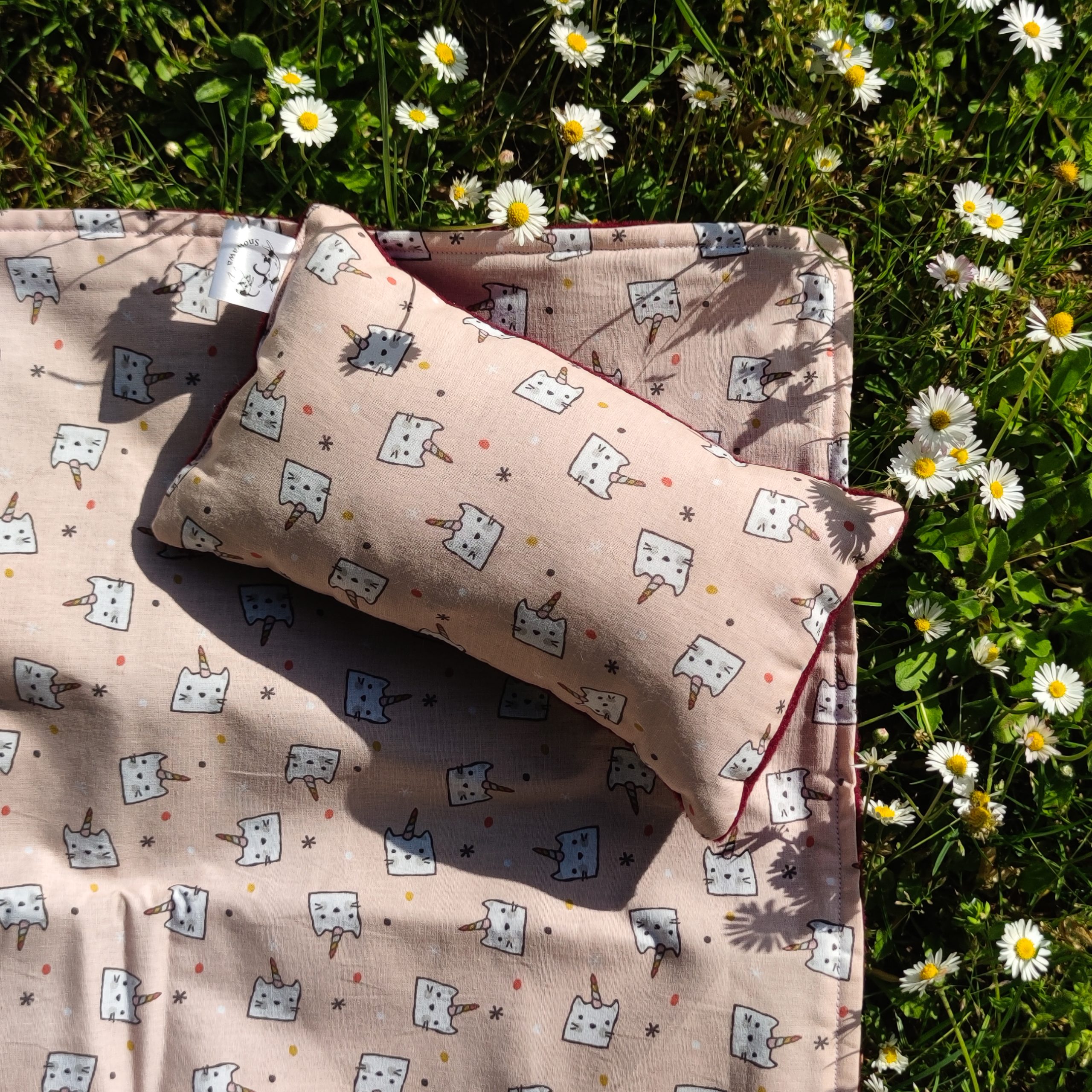 Couverture et son coussin – Chat Licorne