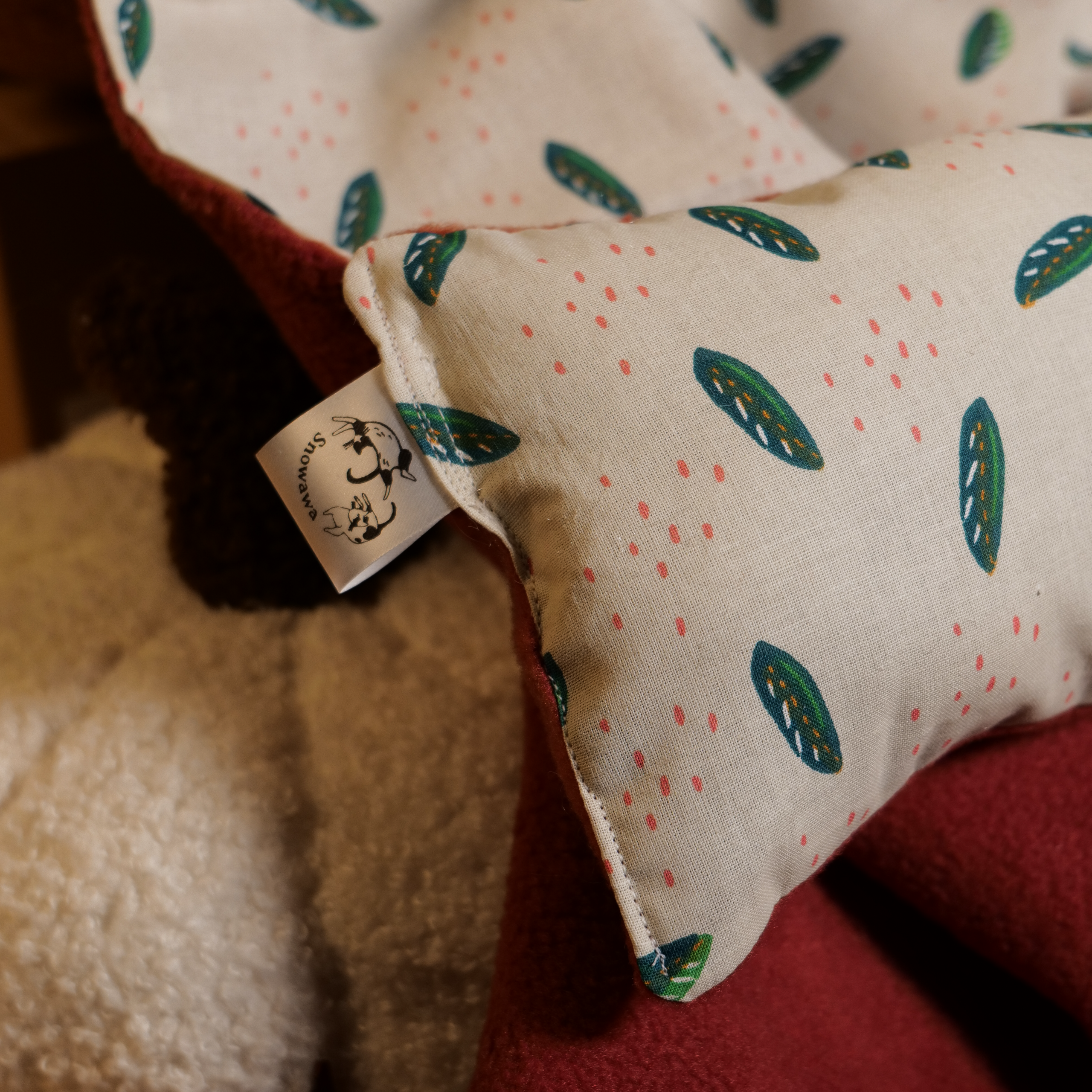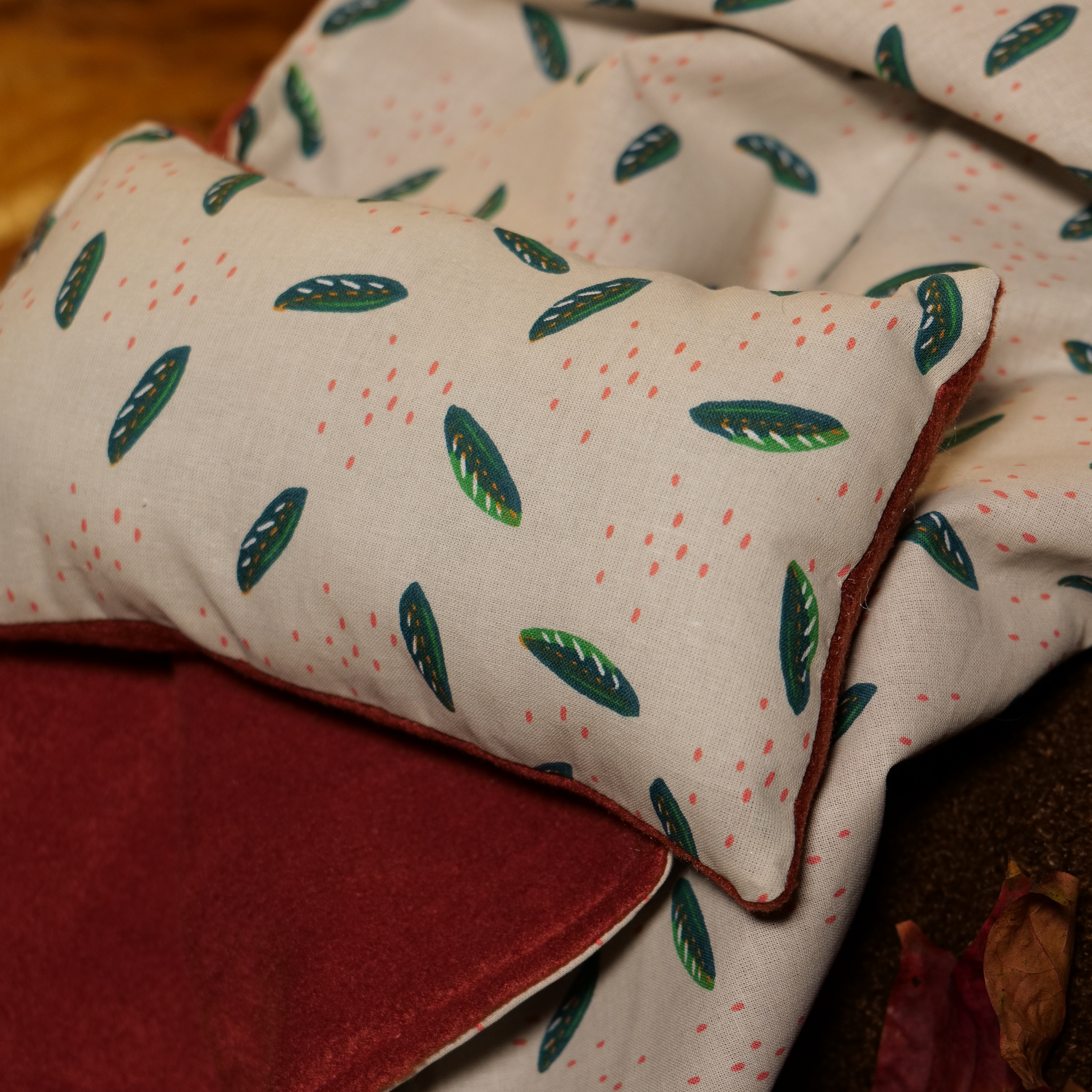 Couverture et son coussin – Feuilles