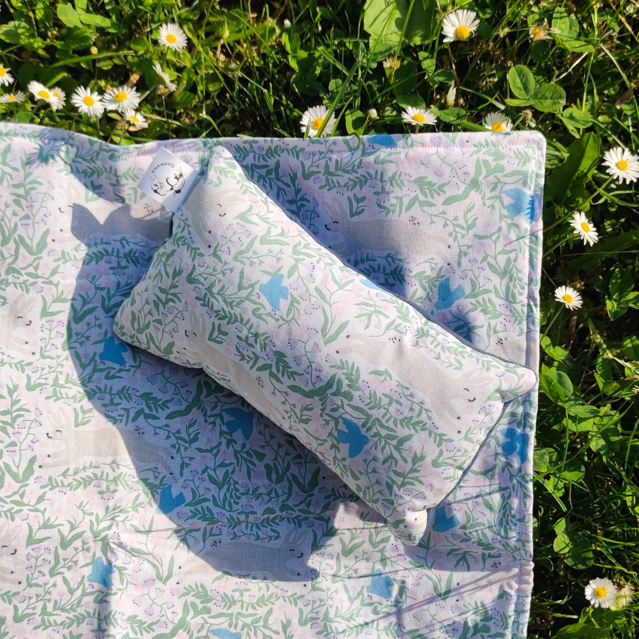 La Couverture des Quatre Lunes est un artefact de protection thermique conçu pour suivre votre familier tout au long de la roue de l’année. Grâce à son alchimie double-face, elle s’adapte aux besoins de son corps, offrant tantôt un nid douillet, tantôt un havre de fraîcheur. Elle est accompagnée de son Coussin d’Ancrage, idéal pour reposer une tête fatiguée après une journée d’exploration