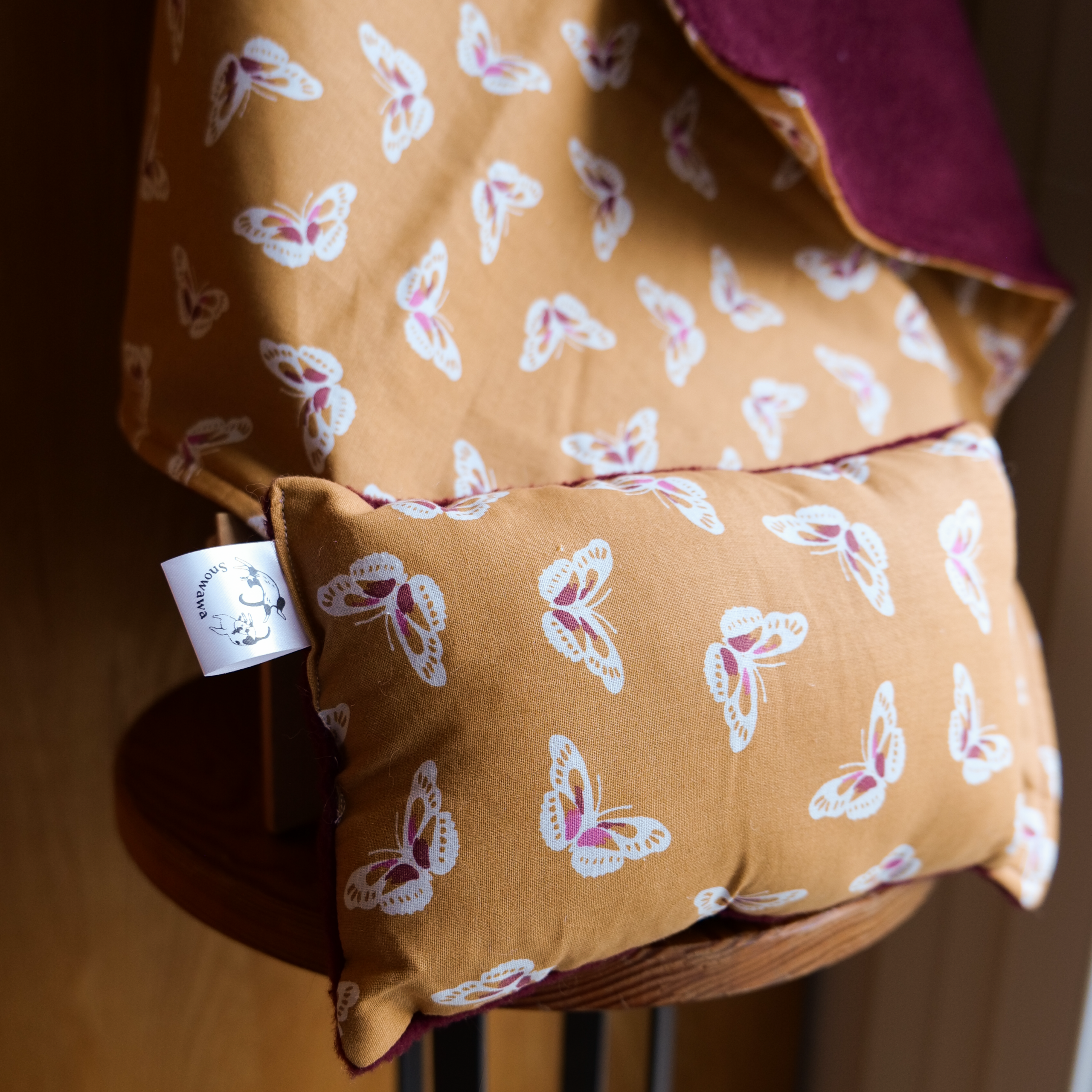 La Couverture des Quatre Lunes est un artefact de protection thermique conçu pour suivre votre familier tout au long de la roue de l’année. Grâce à son alchimie double-face, elle s’adapte aux besoins de son corps, offrant tantôt un nid douillet, tantôt un havre de fraîcheur. Elle est accompagnée de son Coussin d’Ancrage, idéal pour reposer une tête fatiguée après une journée d’exploration