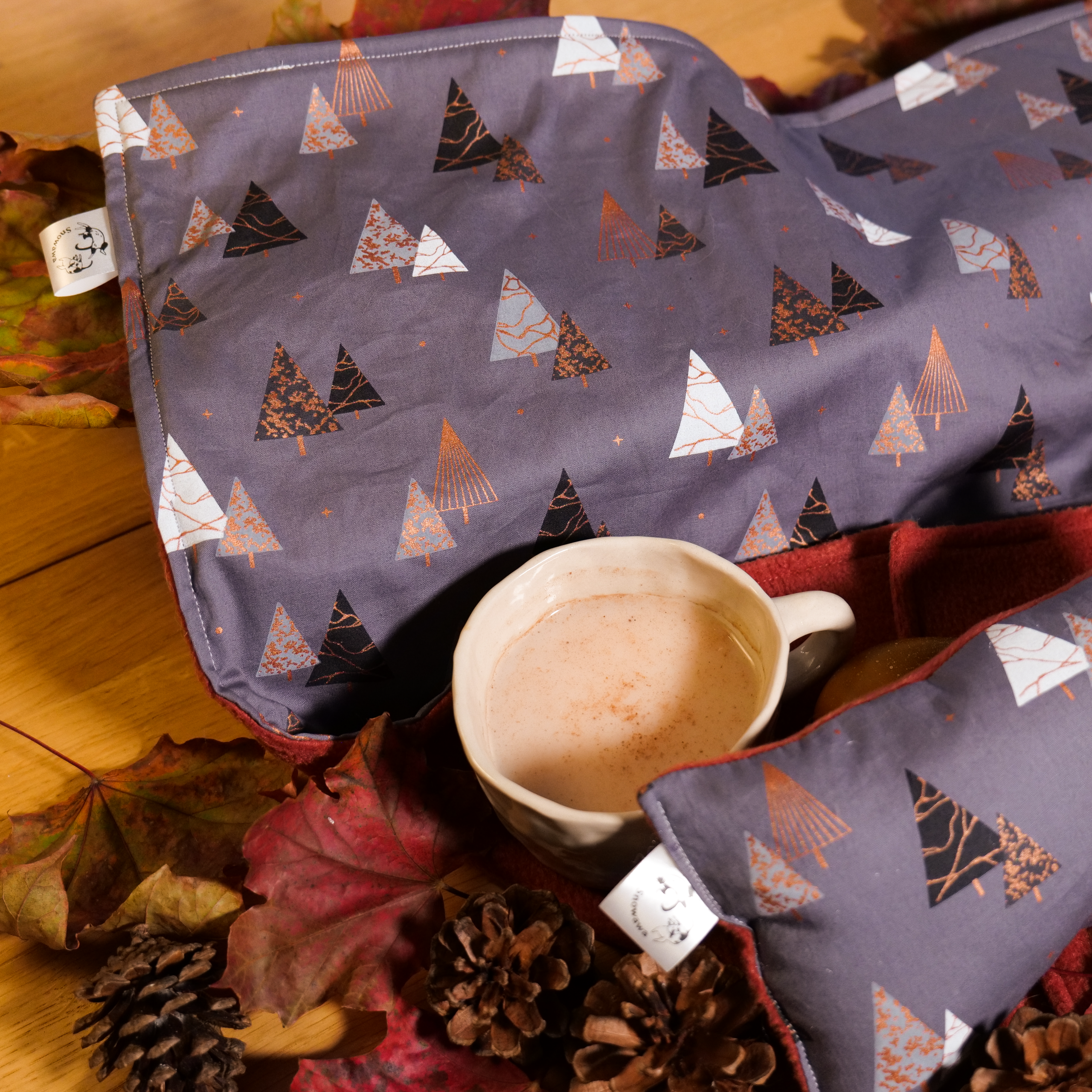 Tu peux coordonner le motif de ta » Couverture des Quatre Lunes & son Coussin d’Ancrage » avec celui de ton « Grimoire de Vitalité » voire avec ton « Parchemin des Frontières » pour un total look « Officine Coven ».