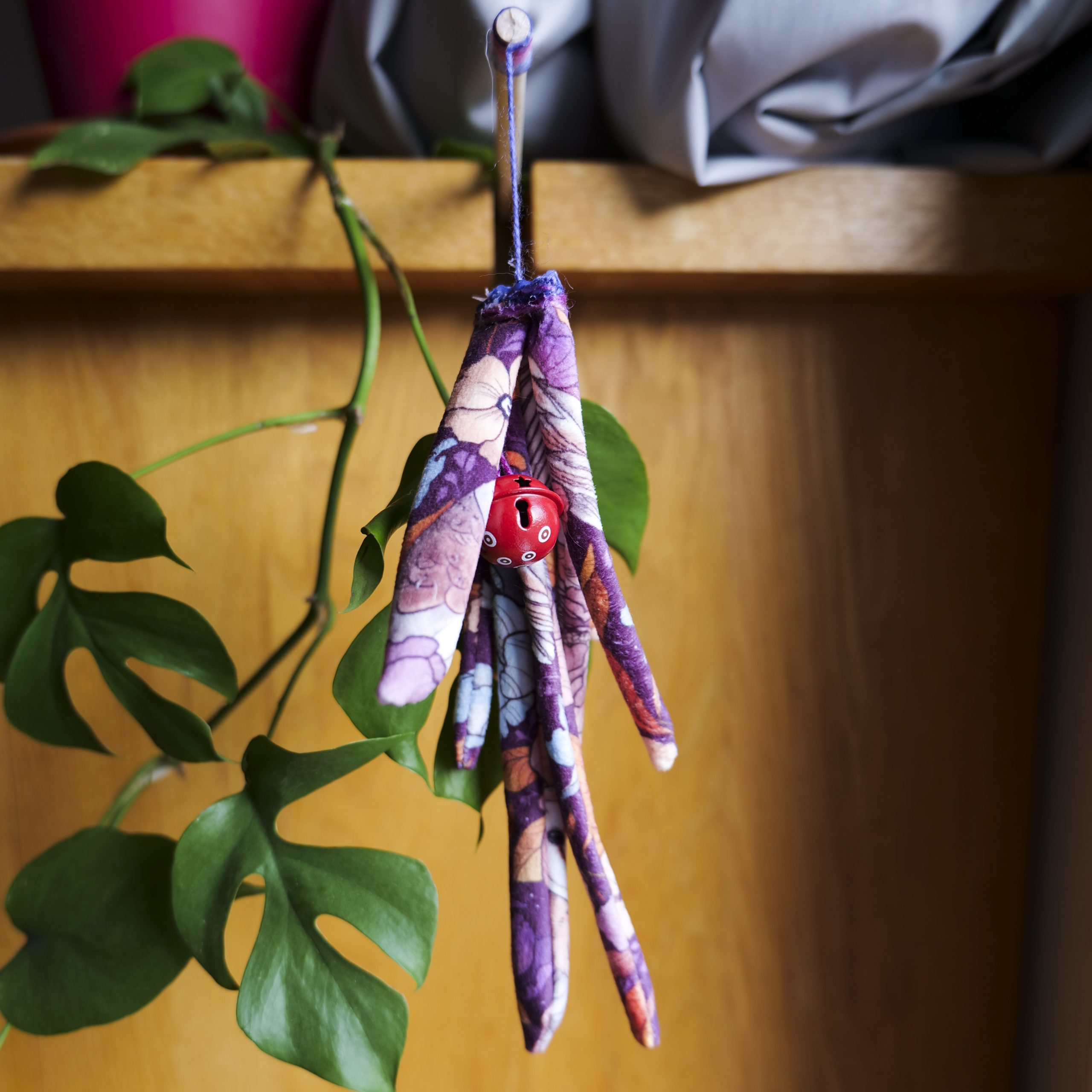 Faites glisser les franges de tissu sur le sol ou agitez-les dans les airs. La diversité des textures (coton lisse et velours soyeux) et le tintement discret de la clochette captiveront votre chat-fée pour des séances de chasse ludiques et complices.