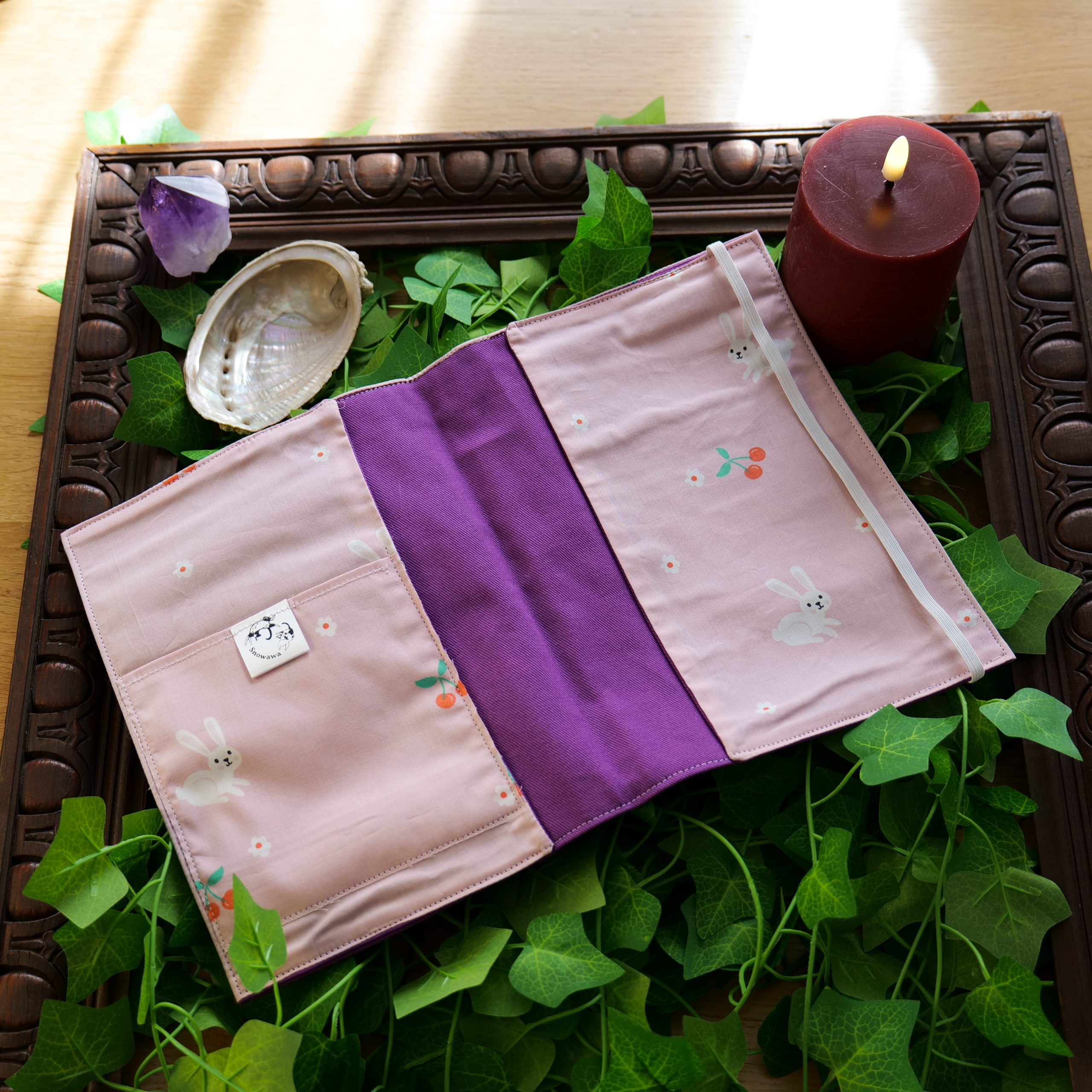 Glissez le carnet de santé sous les rabats latéraux, insérez le passeport ou autres documents dans sa pochette dédiée, et rabattez l’élastique. Votre familier est désormais prêt pour l’aventure, ses documents protégés par la magie de Snowawa.