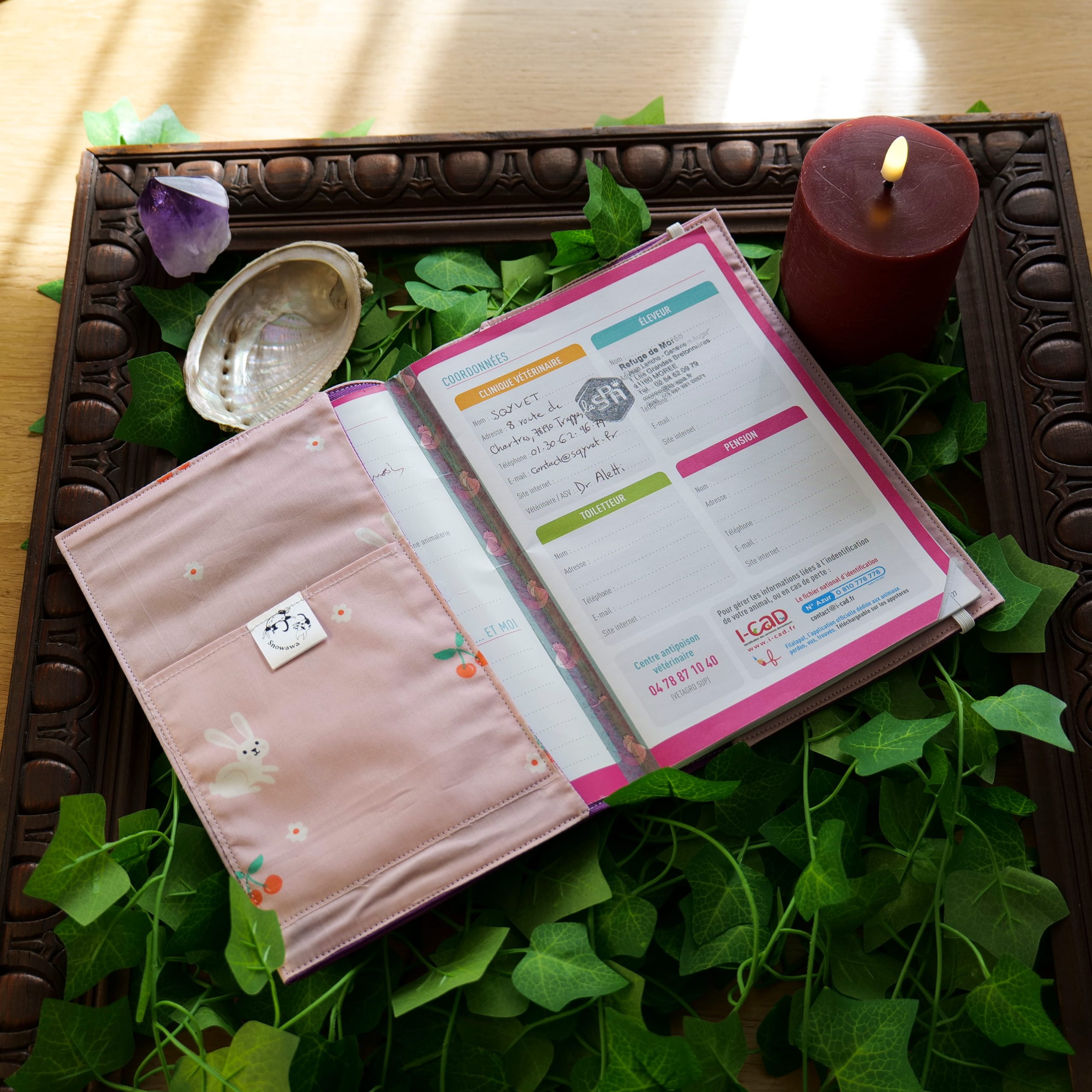 . L’Alcôve Secrète : À l’intérieur, une poche spécifique a été tissée pour accueillir le Passeport de votre familier, médicaments, ou autres. Tout est centralisé : carnet et passeport ne se quitteront plus.