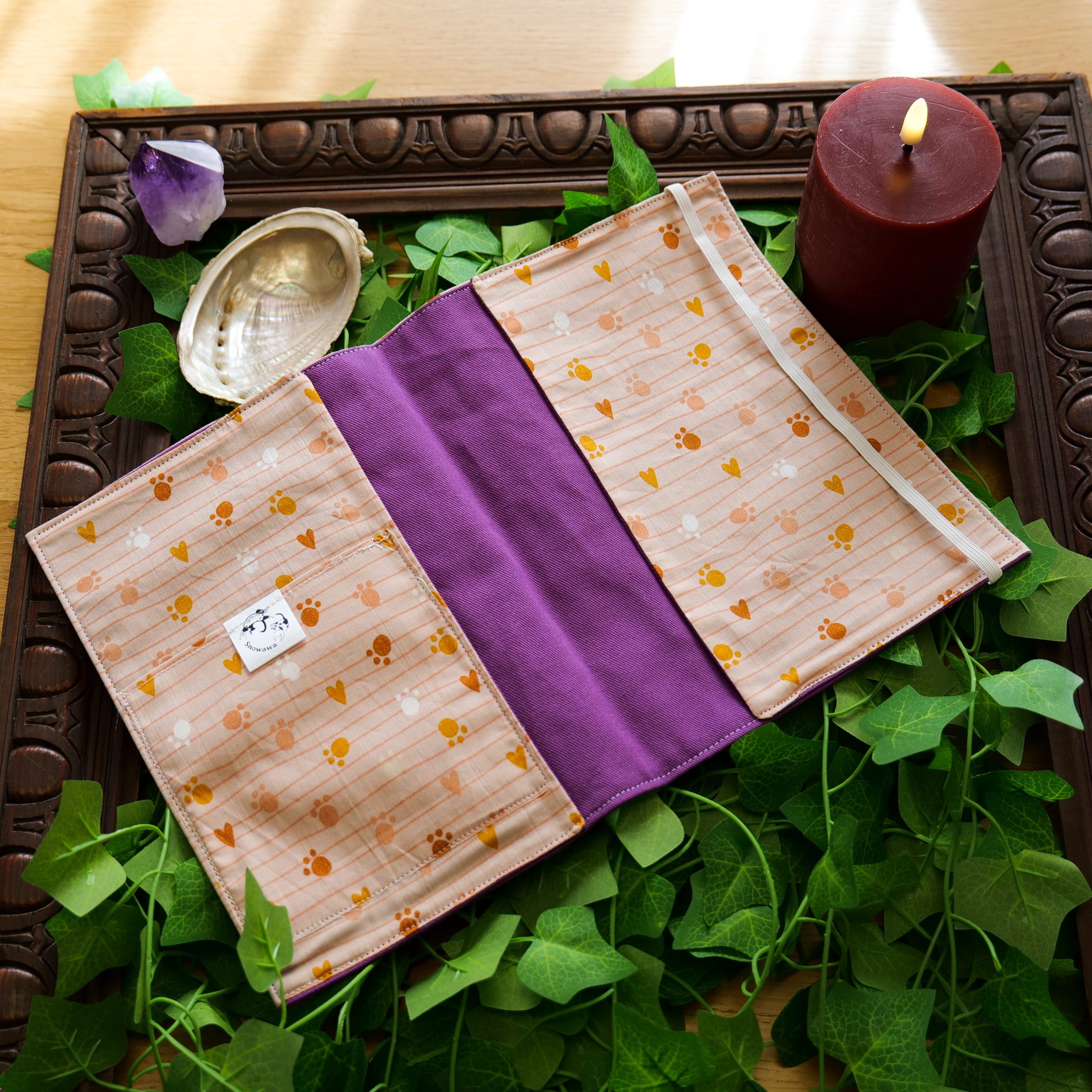Glissez le carnet de santé sous les rabats latéraux, insérez le passeport ou autres documents dans sa pochette dédiée, et rabattez l’élastique. Votre familier est désormais prêt pour l’aventure, ses documents protégés par la magie de Snowawa.