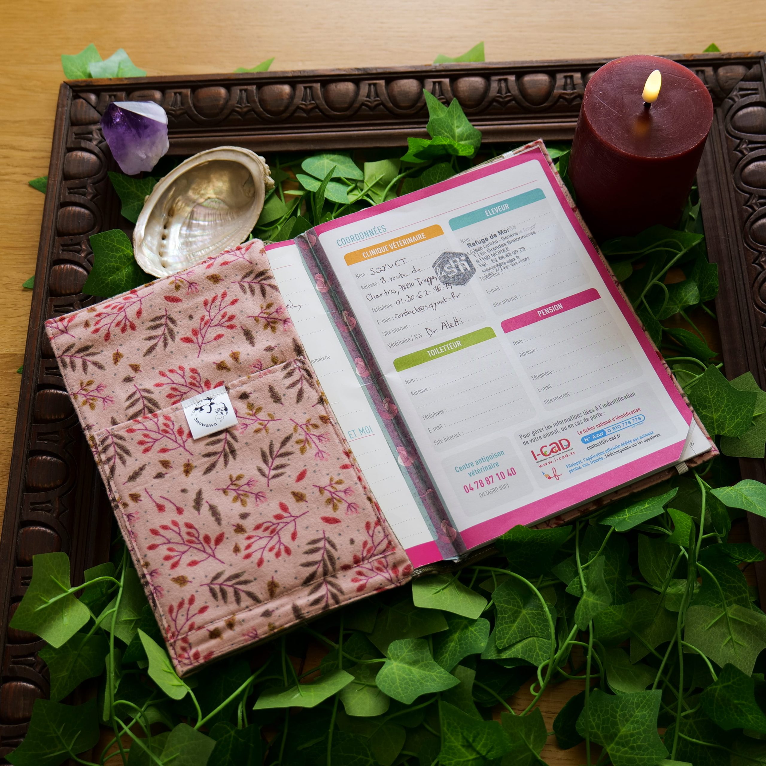 . L’Alcôve Secrète : À l’intérieur, une poche spécifique a été tissée pour accueillir le Passeport de votre familier, médicaments, ou autres. Tout est centralisé : carnet et passeport ne se quitteront plus.