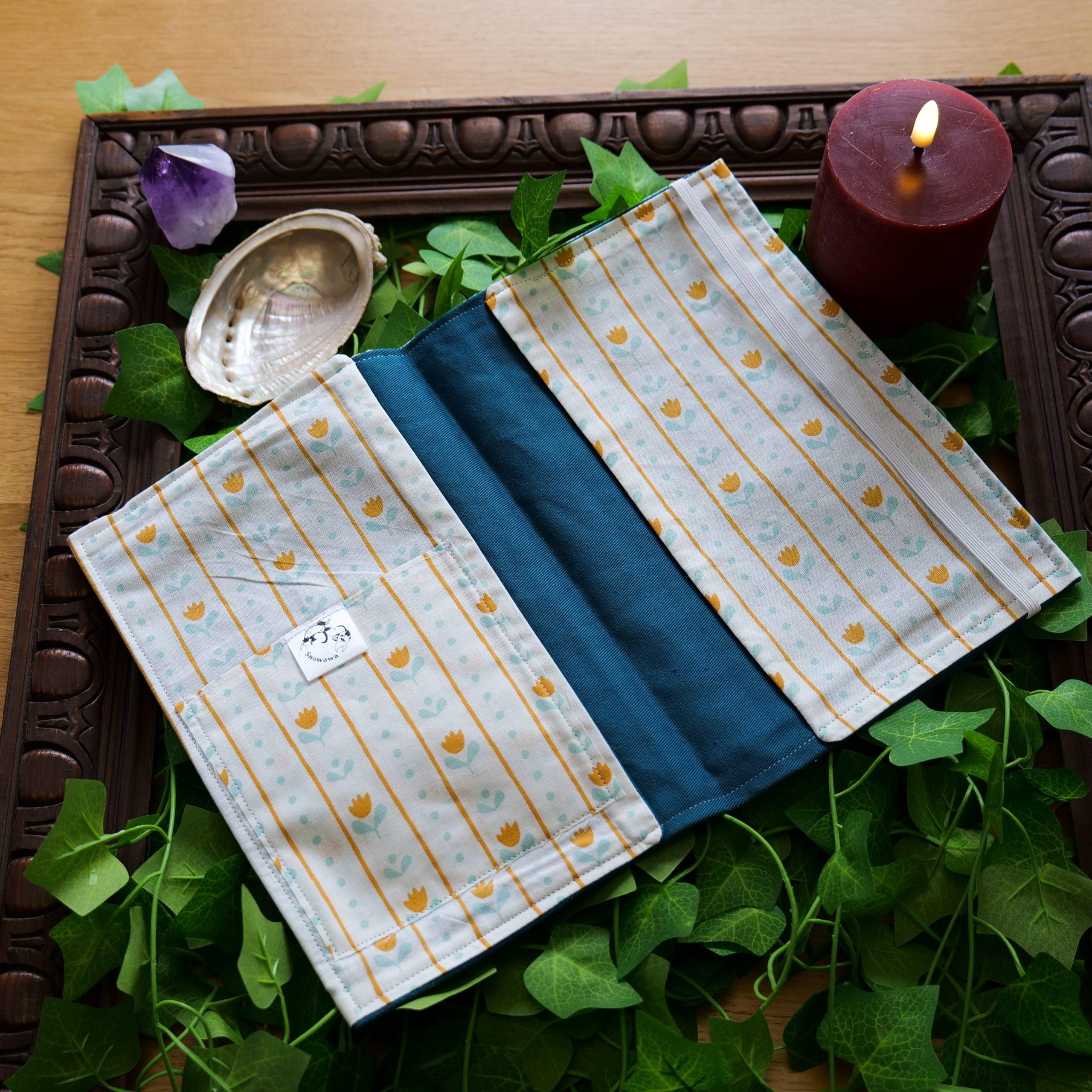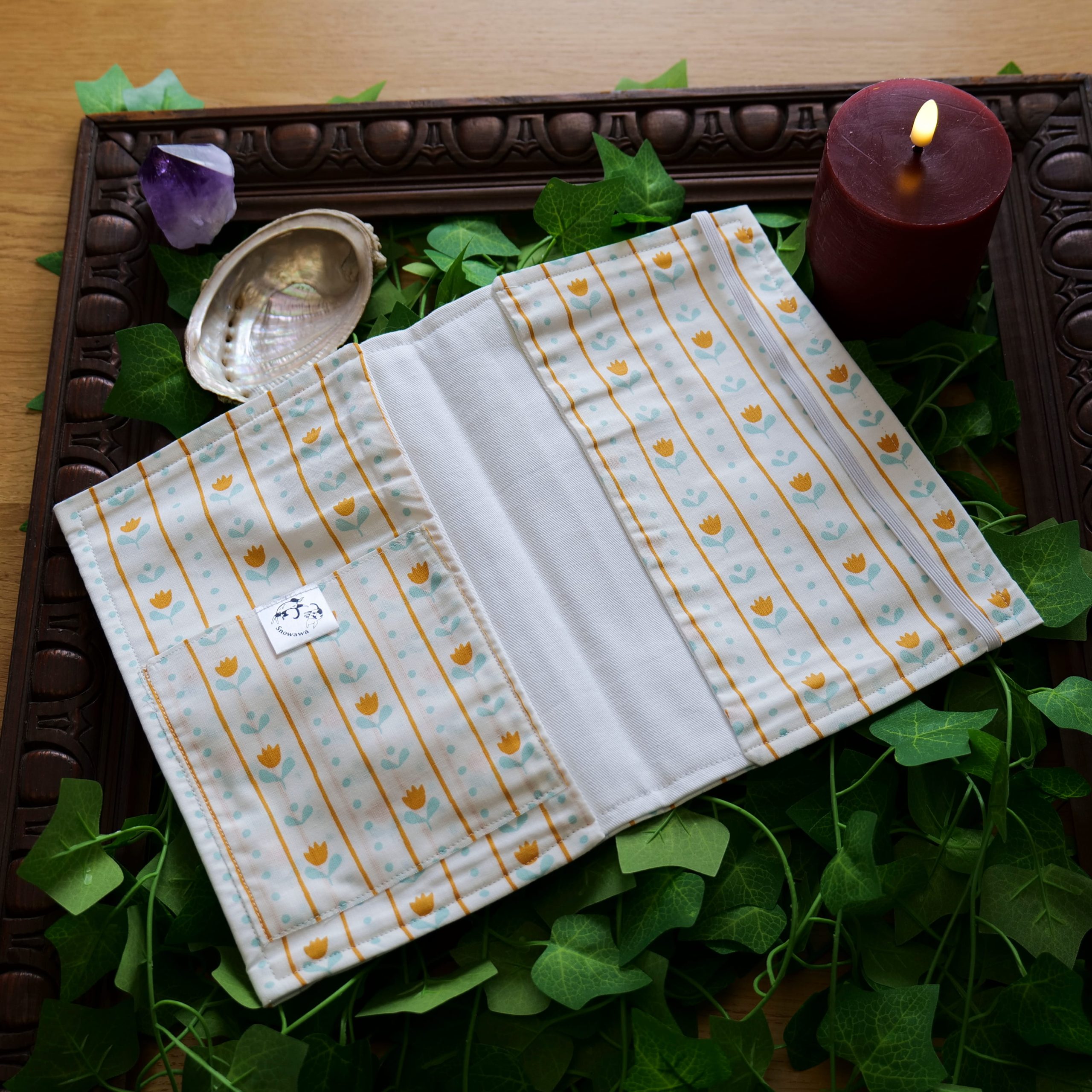 Glissez le carnet de santé sous les rabats latéraux, insérez le passeport ou autres documents dans sa pochette dédiée, et rabattez l’élastique. Votre familier est désormais prêt pour l’aventure, ses documents protégés par la magie de Snowawa.