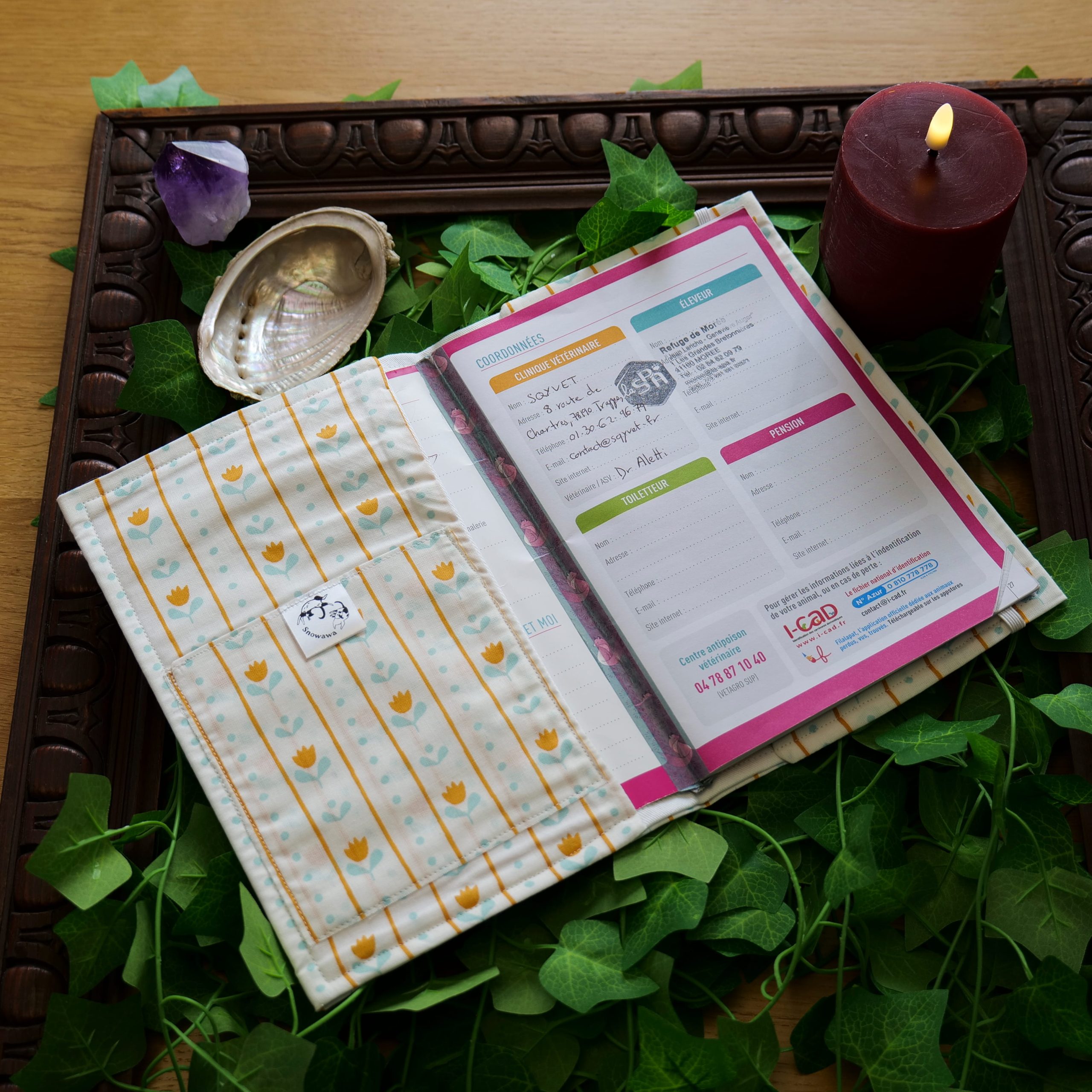Oubliez les protections ordinaires. Ce Grimoire de Vitalité a été conçu dans l’antre de l’atelier Snowawa pour être le gardien des secrets de santé de votre compagnon. Plus qu’une simple couverture, c’est un bouclier d’élégance qui traversera le temps, les voyages et les visites chez le guérisseur (vétérinaire).