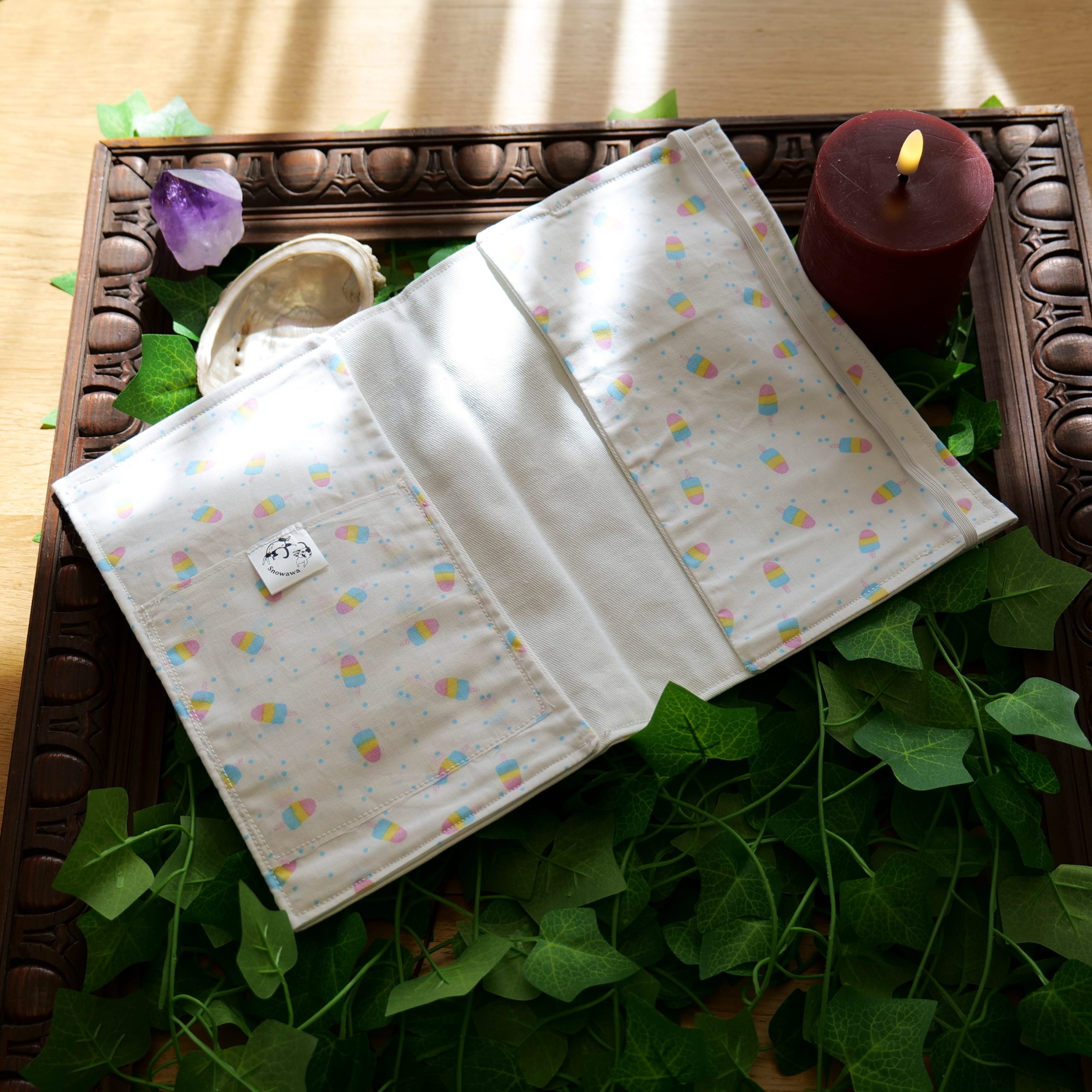 Glissez le carnet de santé sous les rabats latéraux, insérez le passeport ou autres documents dans sa pochette dédiée, et rabattez l’élastique. Votre familier est désormais prêt pour l’aventure, ses documents protégés par la magie de Snowawa.