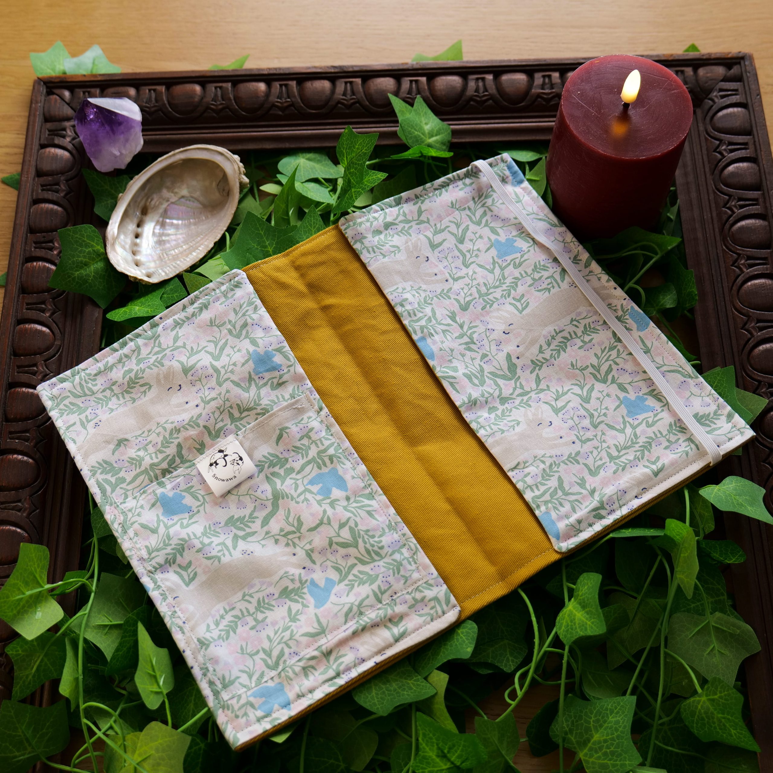 Glissez le carnet de santé sous les rabats latéraux, insérez le passeport ou autres documents dans sa pochette dédiée, et rabattez l’élastique. Votre familier est désormais prêt pour l’aventure, ses documents protégés par la magie de Snowawa.