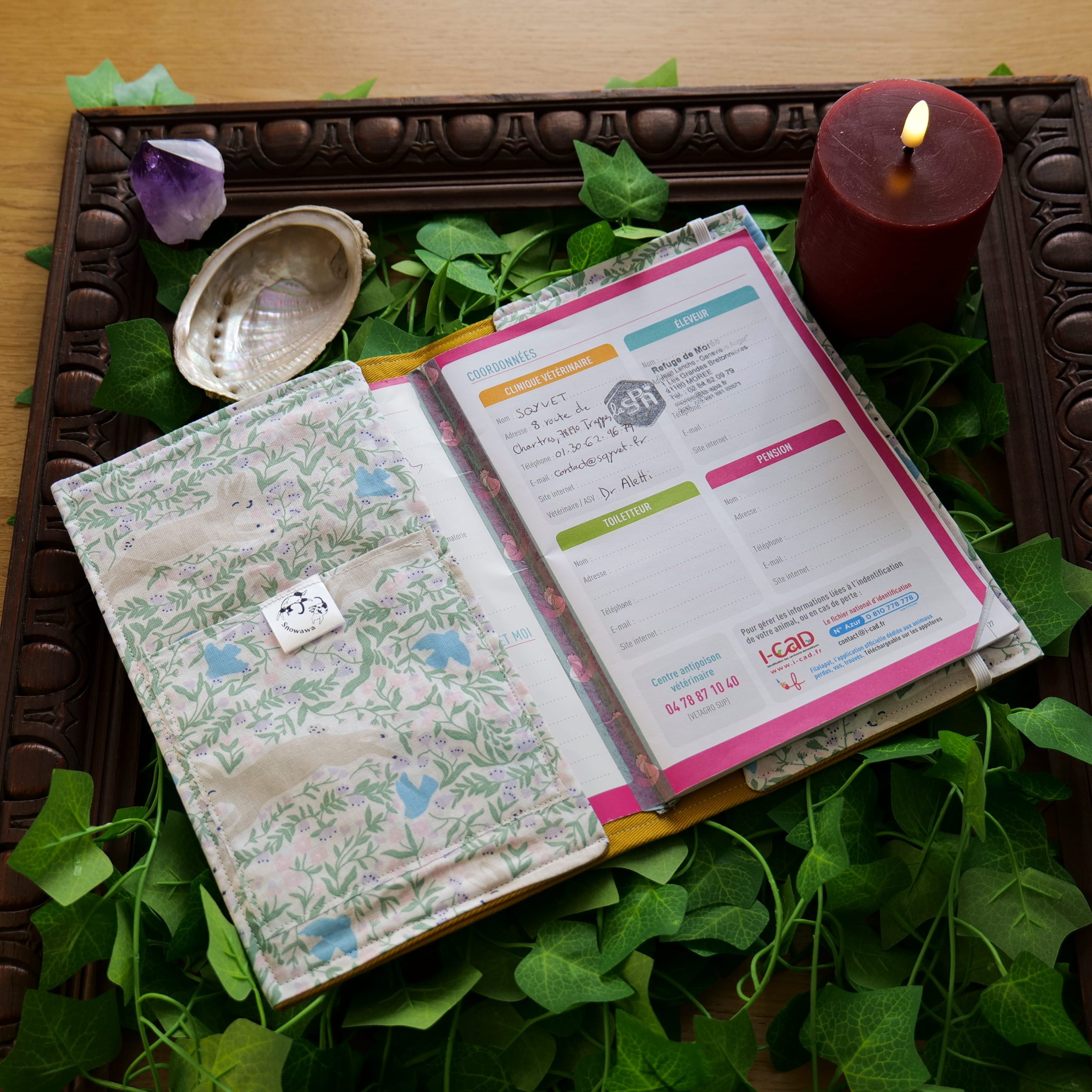 . L’Alcôve Secrète : À l’intérieur, une poche spécifique a été tissée pour accueillir le Passeport de votre familier, médicaments, ou autres. Tout est centralisé : carnet et passeport ne se quitteront plus.