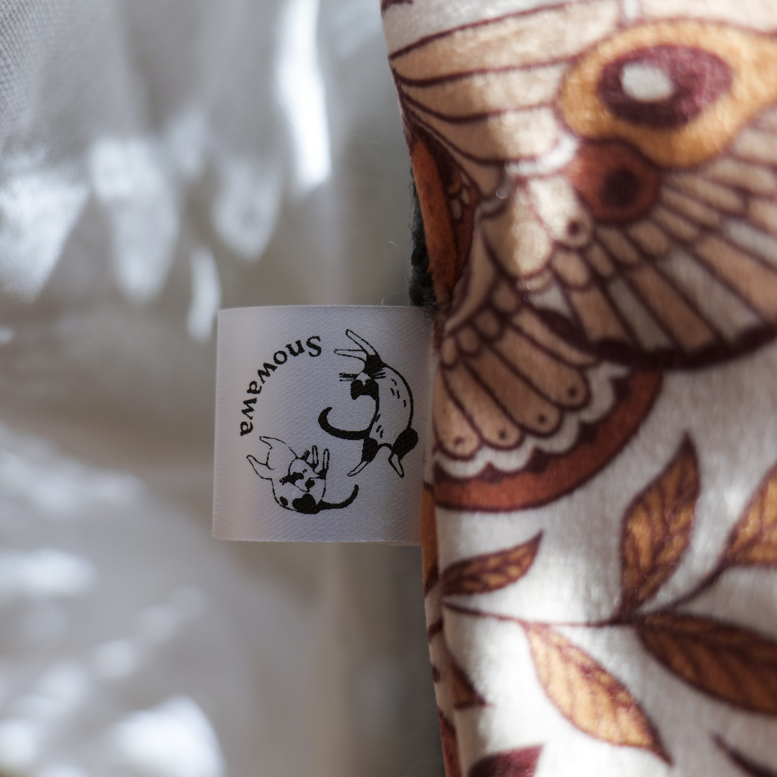 « J’ai acheté ce tapis moelleux pour mon chat Oréo, qui doit le partager avec ma chienne Taska. Chien et chats profitent du tapis et de toutes les autres sublimes créations de Snowawa. » — Mallorie, gardienne de Oréo et Taska.