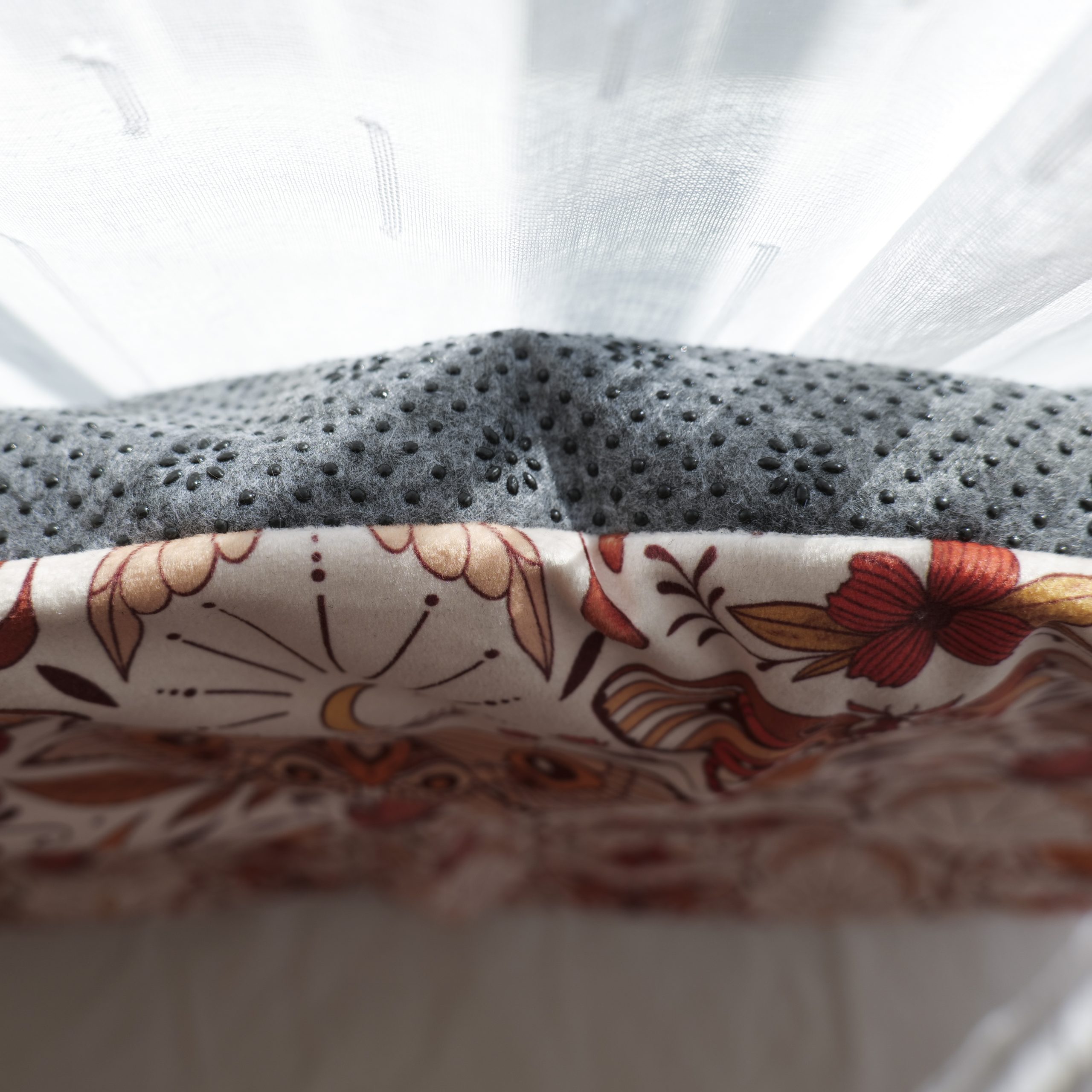 . La Semelle de Terre qui se cache sous le tapis, est un textile d’ancrage spécial. Il adhère aux surfaces les plus lisses pour éviter toute glissade, tout en étant capable de supporter de nombreux cycles de purification en machine.